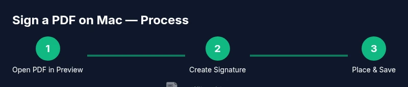 Preview is the built-in macOS app that makes signing PDFs straightforward. Start by opening your document in Preview. If the Signature button is not visible, hover the top menu to reveal the Markup Toolbar and click the Sign button. You will see options to create a signature: trackpad, camera, or iPhone (via Continuity). The trackpad method lets you draw your signature with finger—practice briefly to get a smooth result. The camera option lets you sign on paper and hold it in view to capture a clean image; the iPhone method transfers a signature from your iPhone for accuracy. Once you create a signature, click it to insert, then drag to the desired location and resize as needed. Finally, save the document to preserve your changes, or use File > Export as PDF to produce a fresh copy with the signature embedded. Using Preview minimizes extra steps and keeps your workflow efficient while preserving document integrity. According to PDF File Guide, Preview is typically the fastest way to sign PDFs on macOS and works well for most everyday documents.
