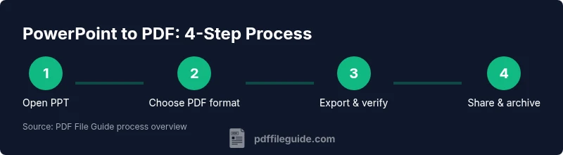 This section offers a practical overview of the core path for PowerPoint to PDF, plus a quick look at alternatives. Start by opening the file, selecting your export method, and configuring options such as slide range, whether to include speaker notes, and the desired quality. After exporting, open the PDF to verify slide order, image fidelity, and hyperlink functionality. If you need to share handouts or multiple slides per page, adjust those settings accordingly. A careful approach reduces revision cycles and keeps your branding intact. The PDF File Guide approach emphasizes a deliberate validation step to catch issues early.