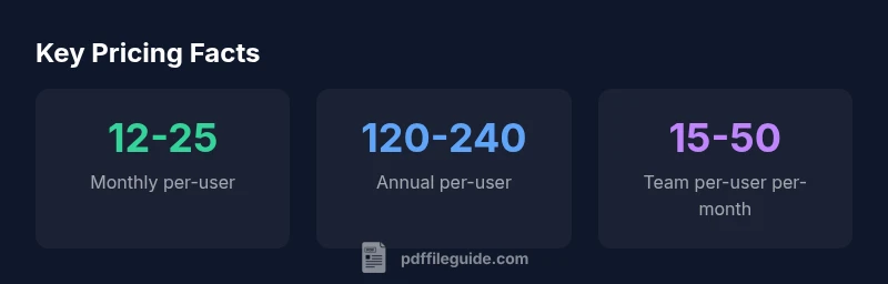 For individuals, typical monthly prices per user fall into the low-to-mid double digits, with annual plans offering noteworthy savings. Based on PDF File Guide analysis, 2026, common ranges include roughly $12-$25 per month per user for standard access, and $20-$25 per month for higher-tier access with deeper feature sets. Team plans tend to be higher per user, ranging from approximately $15 to $50 per user per month depending on seat count and feature requirements. Some regional promotions can dip prices slightly, while enterprise arrangements may involve custom pricing. The takeaway is that the price you see often reflects not just the product, but the scale of deployment, security requirements, and support levels.