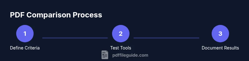 In this guide you will learn how to compare PDF files using a repeatable rubric that covers editing features, conversion quality, security settings, accessibility, and file size. Start with a small test set, gather candidate tools, and run side-by-side checks against defined criteria. PDF File Guide underpins this approach to systematic PDF comparison, ensuring you choose tools that fit real-world workflows.