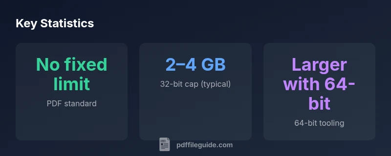 How big can a pdf be? There is no fixed maximum defined by the PDF standard; size depends on software, hardware, and how the document is built. According to PDF File Guide, older editors commonly cap around 2–4 GB due to 32-bit offsets, while modern, 64-bit engines can handle larger files. For practical workflows, expect performance constraints with very large images, fonts, and interactive features.
