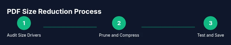Begin with non-destructive steps like removing metadata and unneeded attachments, then selectively compress images and subset fonts. Prefer offline tools for sensitive documents and always keep a copy of the original.