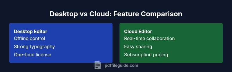Desktop editors excel at offline reliability and typography fidelity, which matters for complex texts such as pdf hills like white elephants. They support deep annotation layers and precise font handling, often with a one-time purchase model. Cloud editors shine in real-time collaboration, easy sharing, and streamlined workflows for teams studying pdf hills like white elephants. They enable quick annotations from multiple devices and faster iteration cycles, but may depend on an internet connection and involve ongoing subscriptions. For archival purposes, desktop tools frequently offer more robust metadata management, while cloud services provide simpler access control and version history. The best choice often depends on privacy needs, project scope, and whether you prioritize offline control or team-based review of pdf hills like white elephants.