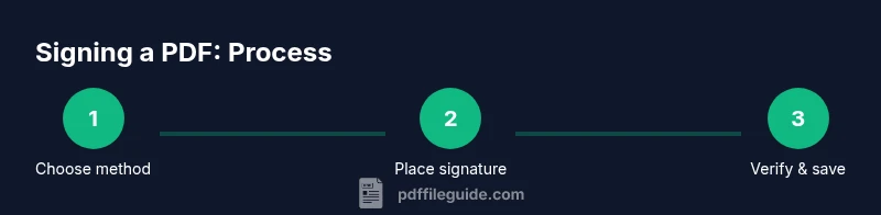 Signing a PDF creates a tamper-evident seal that confirms who signed and when. There are several approaches: image-based signatures (your handwritten sign captured as an image), digital IDs (cryptographic signatures tied to a certificate), and live e-signatures from a signing service. According to PDF File Guide, choosing the right method depends on your workflow, the level of legal enforceability required, and whether you need offline or online signing. Digital signatures use public-key cryptography to verify authenticity, while image signatures rely on the signature graphic; both can be visible on the document or embedded in the PDF metadata. Many professionals keep both a signed and unsigned version for archiving. Ensure your PDF reader supports the signature type you choose and that recipients can verify it without needing additional software. In regulated environments, a trusted digital ID from a CA can help maintain compliance; for quick approvals, an image signature placed by the author may suffice.