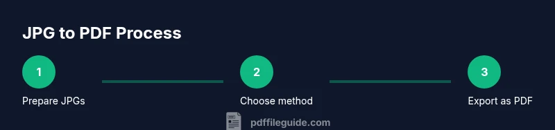 JPG to PDF conversion is the process of turning one or more JPEG images into a fixed layout PDF document. A JPEG image is a raster graphic, which means it stores color information for each pixel. PDF, by contrast, is a portable document format designed to preserve layout, fonts, and images across devices and apps. Converting JPGs to PDF is a common step in preparing photos for sharing, compiling receipts, or creating digital dossiers that are easy to print or archive. For professionals in design, real estate, education, and business, being able to produce reliable PDFs from image assets simplifies workflow, reduces the risk of misalignment, and enables consistent viewing regardless of the viewer. According to PDF File Guide, choosing the right conversion method depends on volume, privacy, and quality needs. You’ll often balance convenience with control, especially when handling sensitive material or large batches.