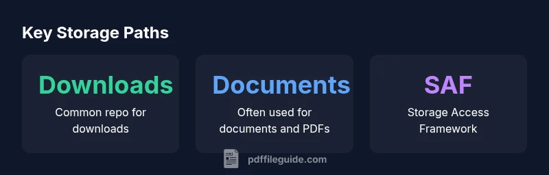 Where pdf is stored in android varies by app and Android version, but PDFs typically end up in one of three places: the Download folder, the Documents folder, or an app-specific internal directory. Use a file manager like Files to locate them, and check apps' save settings to change defaults. Understanding storage models and permissions helps you manage PDFs efficiently.