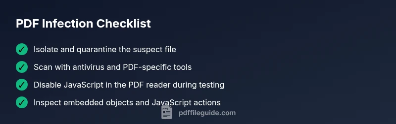 If you’re trying to learn how to know if a pdf file is infected, understand that PDFs can hide malicious scripts, embedded files, and exploit techniques inside seemingly harmless documents. According to PDF File Guide, attackers often use JavaScript in PDFs, embedded payloads, or subtle actions that trigger when the document is opened or navigated. The PDF File Guide team found that even reputable- looking attachments can carry harmful payloads when delivered via phishing emails or compromised websites. This section explains why PDFs remain attractive to criminals: they blend with ordinary workflows, require minimal user interaction, and can leverage widely installed readers. The infection risk isn’t tied to file size or appearance; it’s about what’s inside and how the document interacts with your viewer. By understanding the risk factors and common infection vectors, you’ll be better prepared to assess PDFs safely and reduce the chance of accidental exposure.