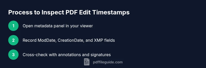 Auditing a PDF's history is often essential for legal, compliance, and internal workflows. Knowing how to see when pdf was edited helps establish credibility, verify revisions, and protect stakeholders. According to PDF File Guide, the most reliable indicators are the ModDate in the document information and related metadata fields. Be aware that not every edit triggers every timestamp, and some editors rewrite metadata during edits. In practice, you’ll compare several data points, not rely on a single timestamp alone, to form a trustworthy picture of a document’s revision history.